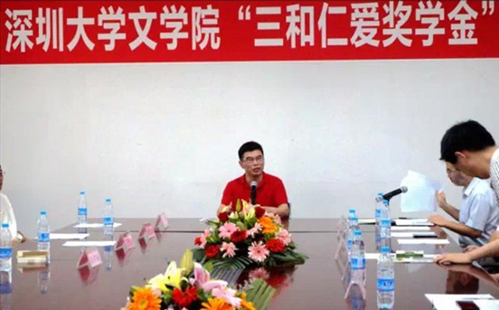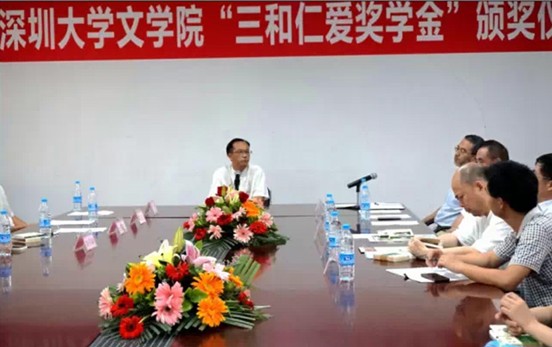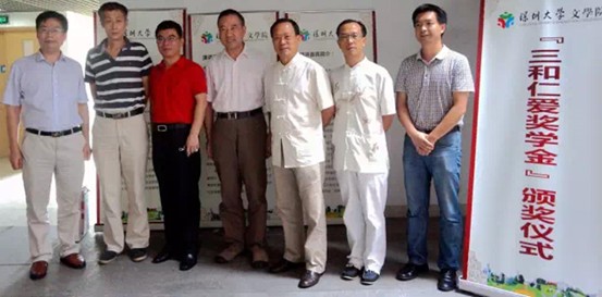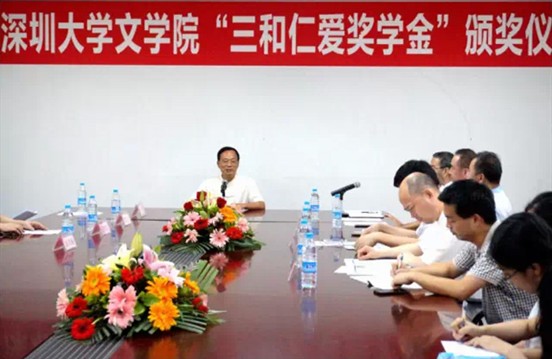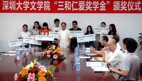 2015年5月15日下午2:30,在深圳大学文学院会议室,来自三和国际、深圳孔圣堂、广东省高科技产业商会的来宾及深圳大学文学院领导、教师和国学精英班本科生、研究生欢聚一堂,举行了深圳大学“三和仁爱奖学金”的颁奖仪式暨儒学学术交流活动。