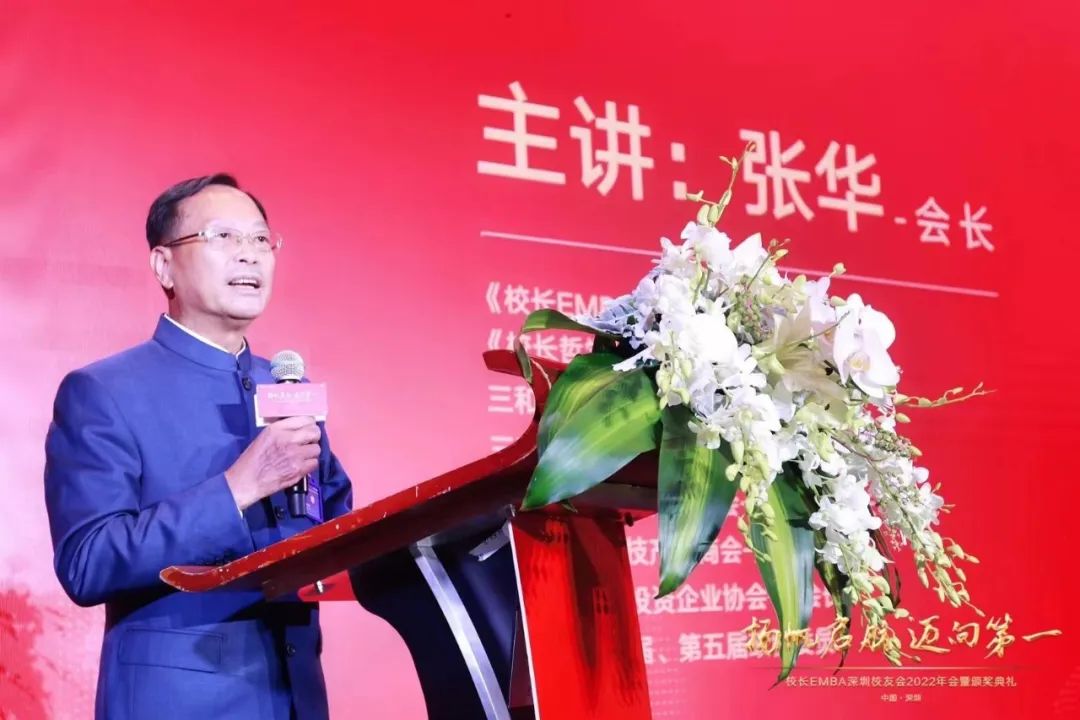 晚宴开场,校长EMBA深圳校友会理事会张华会长代表深圳校友会理事会和秘书处致辞,张华会长在致辞中首先衷心感谢黄强老师不顾疫情风险千里奔赴深圳授课的使命担当和深厚情谊,然后重点分享了当前复杂的国际局势、艰难的经济形势和反复的疫情,对我们的校长和企业带来很严重的考验和挑战,不挣钱、亏损、倒闭成为普遍现象,如何化危转机,逆境破局——打造成为儒商!张华会长重点分享了《儒商标准》:有较高的人格修养和人生智慧;有坚定的儒家信仰和神圣使命;有良好的个人口碑和社会贡献。为经济发展、科技进步、社会和谐的家国天下奋斗一生!