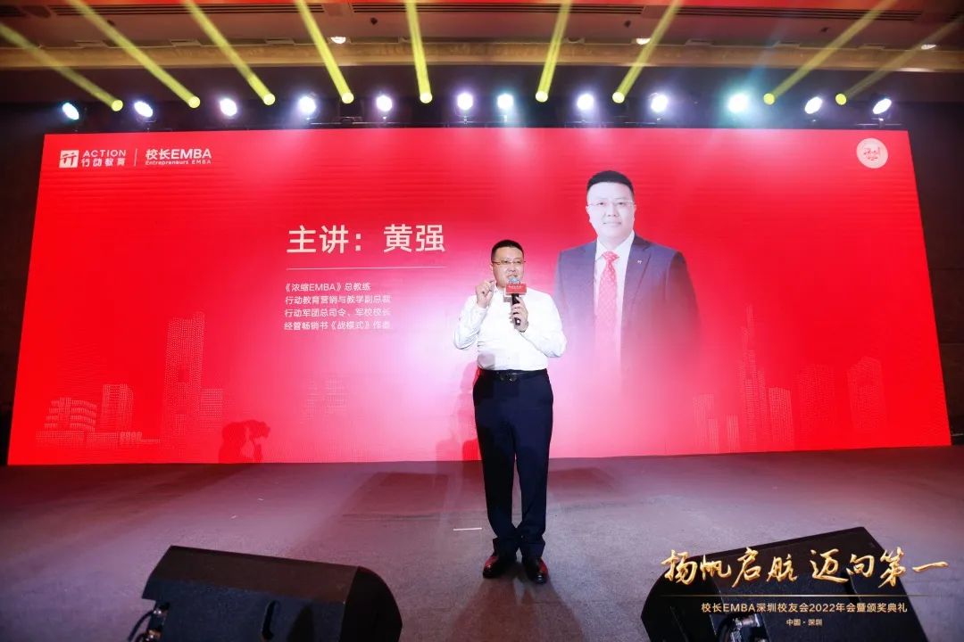"千秋邈矣独留我,百战归来再读书",本次年会不仅是校长们欢聚庆贺的盛典,而且也是一次思维碰撞、提升认知、成长升维的智慧盛会,深圳校友会理事会诚挚特意邀请了行动教育营销副总裁、行动军校校长、畅销书《战模式》作者黄强老师,针对当下商业环境不断变化、竞争日益激烈、团队士气低迷、企业增长困局的情境下,围绕“打赢不确定时代的增长战”这一主题,量身为企业家校长、校友们奉献了一场团队打造的精彩校长私房课,首次在深圳开讲。