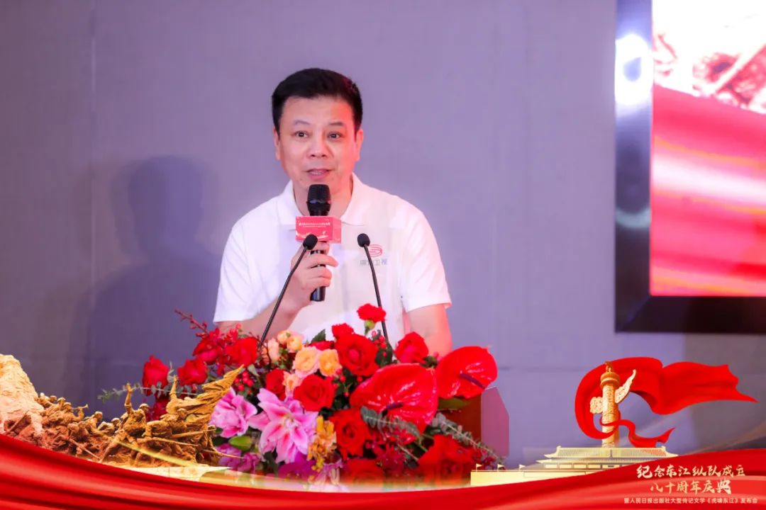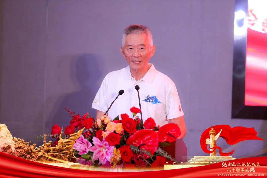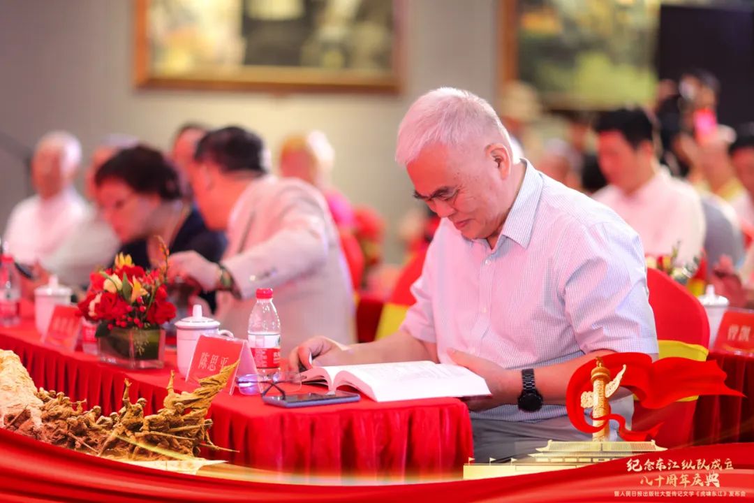 人民日报出版社大型传记文学《虎啸东江》作者吴重龙老师发表致辞:正如创作中的每一字、每一句都是用感悟和真心书写的一样,我希望通过这本传记传递出我对东边纵战士们坚定意志和信念的钦佩。《虎啸东江》是一段为时代呐喊的历史篇章,作为作者,我对《虎啸东江》这本传记充满了敬意和自豪,因为这本书不仅仅是一部纯粹的传记,更是激励人心的讴歌,唤起着每个人心中对于勇敢和信仰的渴望。