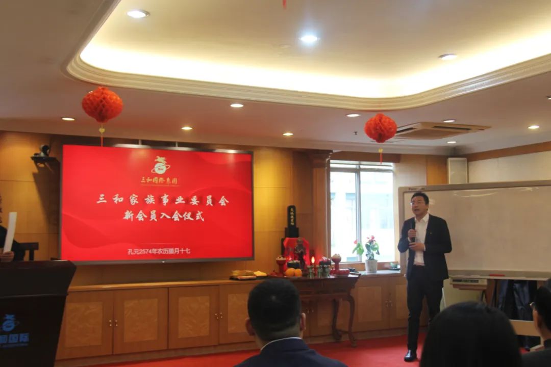 2024年1月27日,三和国际集团2023年度三和家族事业委员会新会员入会仪式在三和国际孔圣堂隆重举行。三和国际集团董事长、三和会会长张华先生,集团行政副总裁、三和会副会长池静芳女士,集团运营副总裁、三和会秘书长岳晓光先生和一众新老会员、准会员及三和家人共同参与见证。