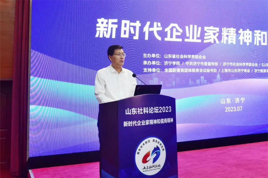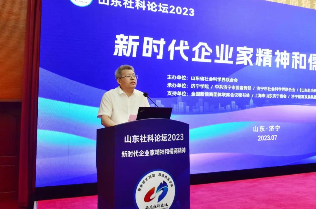 7月11日,山东社科论坛2023——新时代企业家精神和儒商精神在济宁学院举行。会议采取线上和线下相结合的形式举行。与会学者围绕会议主题,聚焦“新时代企业家精神的理论内涵、儒商精神的当代价值、企业家精神与中国式现代化、新时代儒商精神与山东高质量发展、优化营商环境助推民营经济高质量发展的山东路径、企业治理智慧与现代企业经营管理实践”等多个议题展开深入交流研讨。