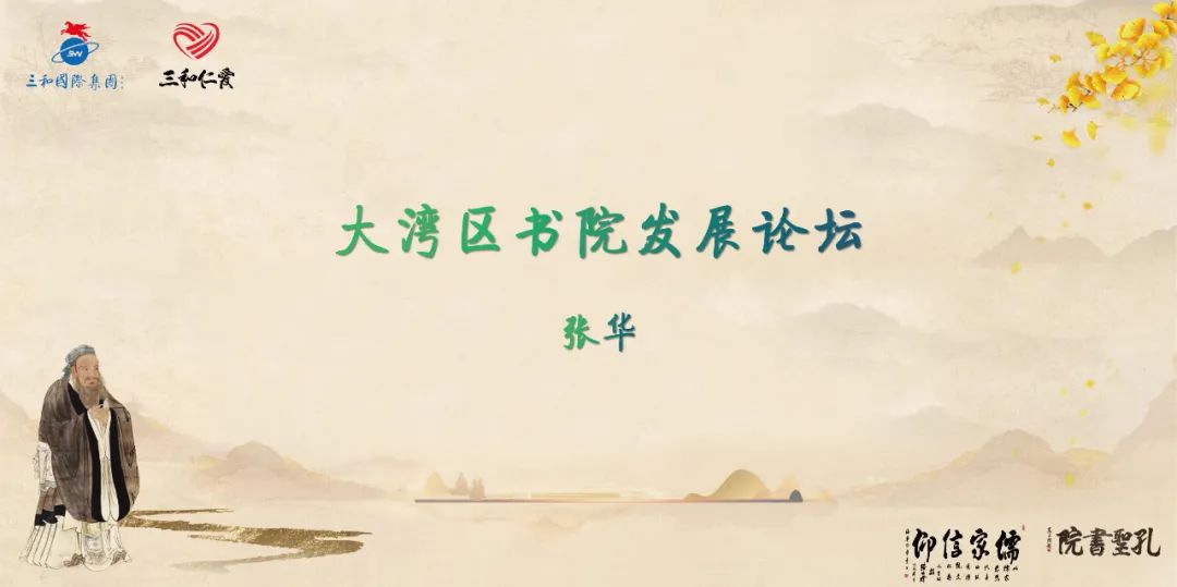 三和仁爱文化基金会会长、三和国际集团董事长的张华先生代表深圳孔子文化节、孔圣书院向此次大湾区书院发展研讨会表示最热烈的祝贺,并作为院长代表发表了主题演讲。张华董事长以“三生万物和为贵,儒家信仰事业兴”为引言,展示了三和国际如何践行儒家信仰,将其融入企业的血脉,使之成为推动事业发展的核心力量。