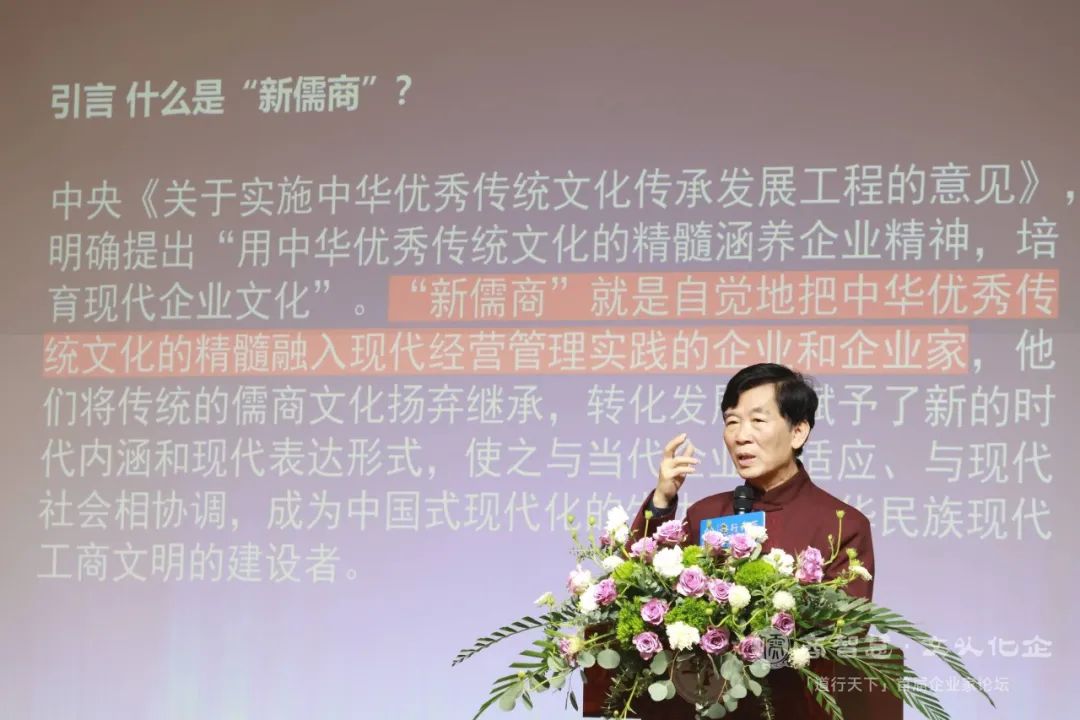 会上,第一个环节全国新儒商团体联席会议秘书长、中山大学教授、儒商大厦(产业园)顾问黎红雷先生应邀发表主旨演讲《当代新儒商事业的使命》。作为当代新儒商事业的引领者,黎红雷教授提出“四为”理念:“为儒家思想在企业实现创造性转化,为企业理论在中国推进创新性发展,为当代世界新商业文明提供中国的方案,为中华民族现代文明谱写工商文明的篇章!”