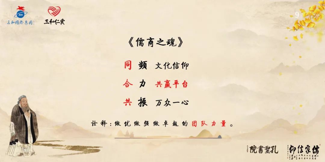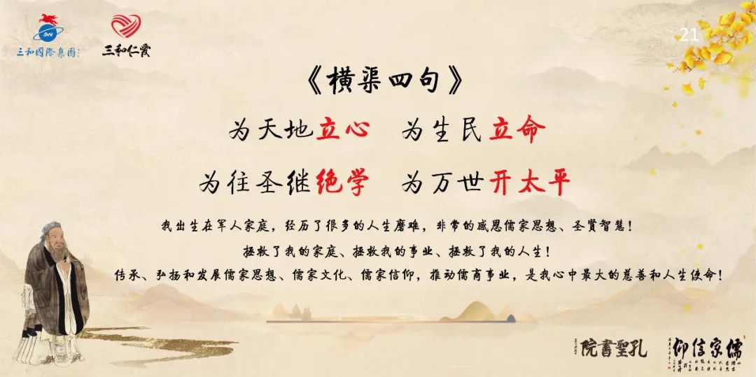 三、华圣文化:传承、弘扬和发展儒家思想、儒家文化和儒家信仰,为儒商事业作出积极贡献。