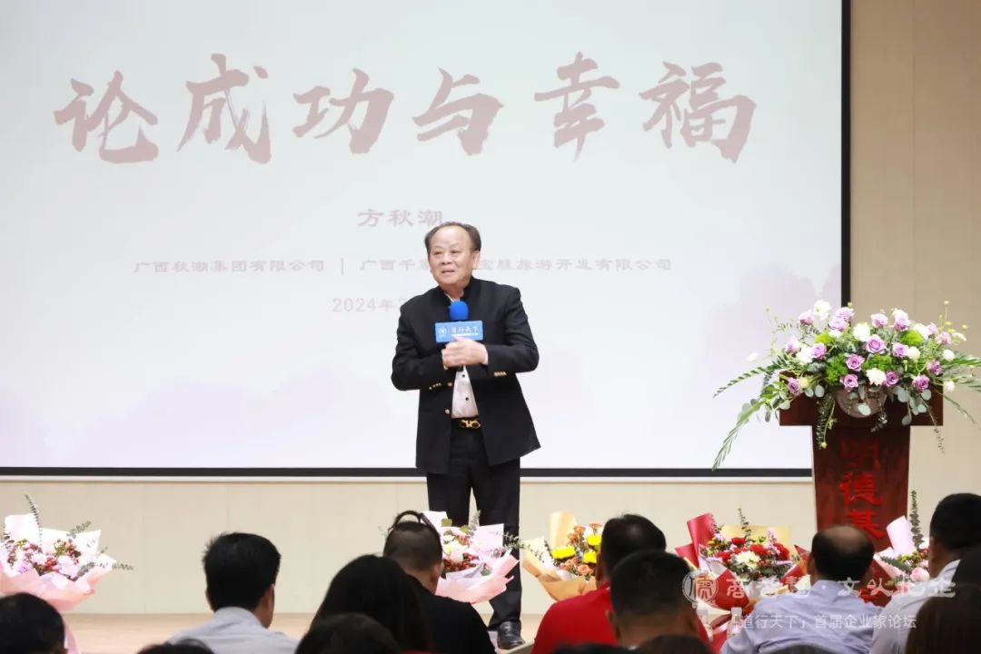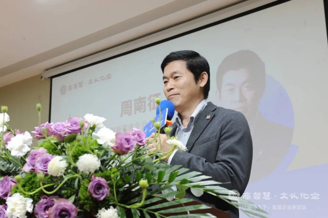 下午,第一个环节由第三届全国新儒商年会主席周南征介绍了今年将在佛山举办第三届全国新儒商年会的情况说明;第二届全国新儒商年会主席、广西秋潮集团有限公司董事长方秋潮分享了自己管理企业的心路历程,以及学习践行、企业落地中华传统文化的感悟、方法。