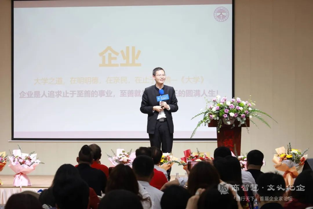 随后,中国商道研究院院长王前师教授分享了“商道智慧:高维领导力的修炼”课。他坦言:商本仁业,福泽生民,商之大家,内圣外王!中国商道是以中国易经的辩证观为基础,吸取古今中外思想和经验的精华,让企业实现持续健康发展的优秀思想、科学方法和高效工具。