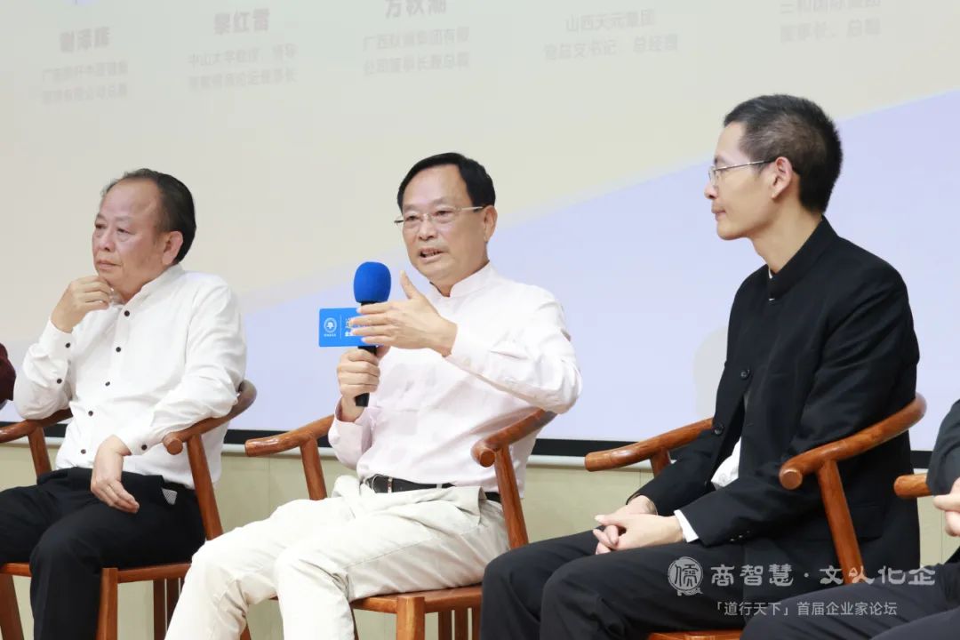 下午第二个环节,由明德基金会副理事长谢泽辉作为主持人,对出席本次论坛嘉宾企业进行了圆桌对话:第二届全国新儒商年会主席方秋潮、第三届全国新儒商年会主席周南征、山西天元集团总经理毛红亮、深圳三和国际集团董事长张华、中国商道研究院院长王前师等就企业如何落地中华优秀传统文化进行回答。