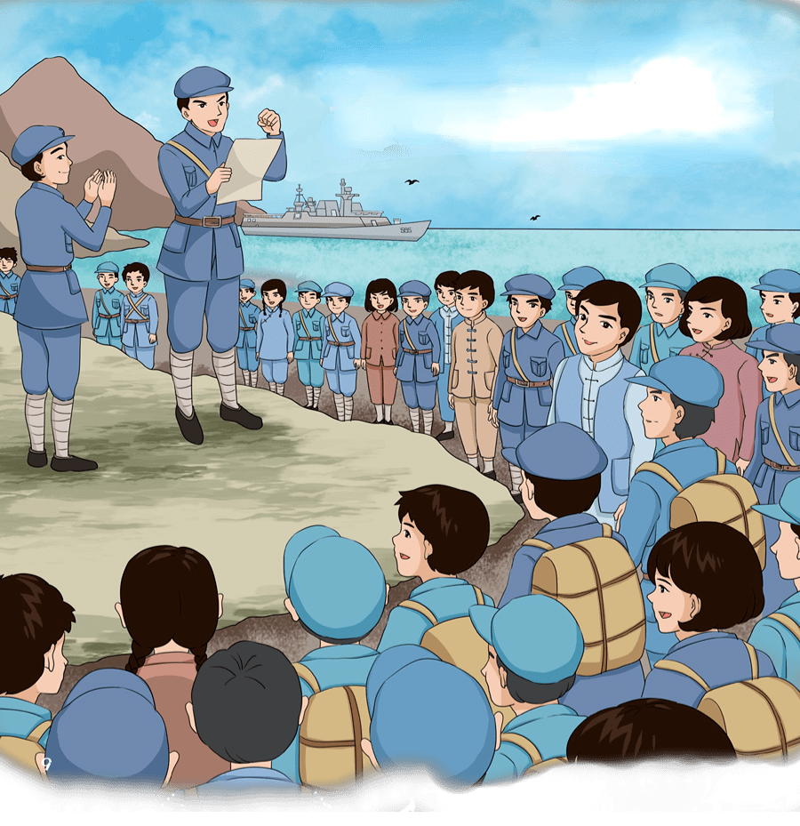 东江纵队战士赶赴沙鱼涌集中。