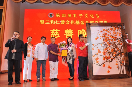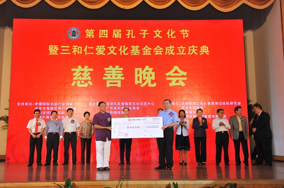 晚上18时,第四届孔子文化节暨三和仁爱文化基金会成立慈善晚会在五洲宾馆五洲厅拉开帷幕。深圳孔圣堂创办者、三和国际集团张华董事长致祝酒词。他表示,三和国际发起成立三和仁爱文化基金会,是基于对民族优秀传统文化的深度关切以及对文化公益事业的热爱和奉献。基金会名称由前文化部老部长、孔圣堂理事长高占祥先生提议,基金会的宗旨是:弘扬孔子思想,复兴民族文化,振兴国民道德,促进社会和谐。三和仁爱文化基金会热切期望更多的有民族文化情怀的人共同参与到这一伟大事业中来,踊跃奉献爱心!为实现“中国梦”,为促进家庭和睦、社会和谐、世界和平而共同努力!