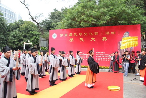 2014年10月25日至26日,由深圳市孔圣堂儒家文化交流中心、广东高科技产业商会、三和国际集团联合主办的第五届孔子文化节在深圳隆重举行。本次文化节由“祭孔大典”、“儒家智慧高峰论坛”、“名人艺术沙龙”三大主题活动组成,来自全国学界、政界、商界、艺术界及新闻媒体等社会各界力量超过2000人共同支持、参与、见证这一弘扬中华优秀传统文化的盛举。