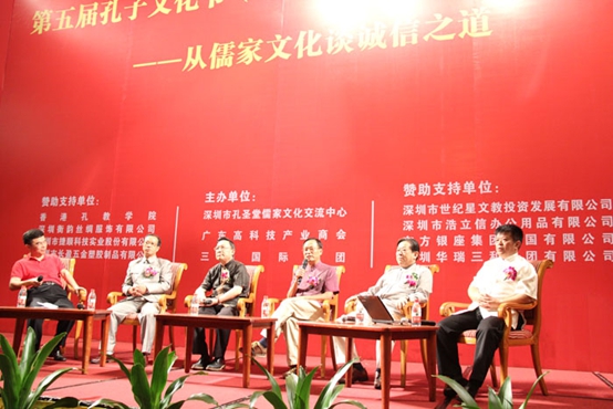 26日下午,在深圳五洲宾馆举行了文化节的另一重要活动“儒家智慧高峰论坛”,此次高峰论坛围绕“从儒家文化谈诚信之道”的主题展开。论坛由广东高科技产业商会执行会长兼秘书长王理宗主持。