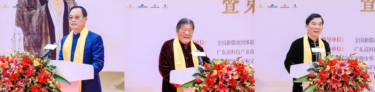 下午三点整,首届大湾区新儒商国际论坛在深圳威尼斯英迪格酒店拉开帷幕。原贵州省人大常委会副主任、著名阳明学者顾久,深圳市原政协副主席、农工党深圳市委主委、深圳大学副校长陈思平,原深圳市政府外事办主任、市政协常委、港澳台侨委员会主任毛晓碚,深圳市委原统战部副部长、深圳市侨联主席、侨媛会会长、孔子后裔孔爱玲,深圳市委宣传部二级巡视员,原深圳市委外宣办主任、市政府新闻办主任、著名儒家学者韩望喜、第十四届全国政协委员,广东高科技产业商会会长王理宗,香港孔教学院院长汤恩佳,博鳌儒商论坛理事长、全国新儒商团体联席会议秘书长、中山大学教授黎红雷,新加坡相圣学院创院院长、南洋理工大学孔子学院创院院长许福吉,广东外语外贸大学教授、广东省国学学会会长王焱,深圳市龙笛钢结构工程有限公司董事长、杭州电子科技大学兼职教授蒲宗阳,盟大集团董事长、创始人李实,广东大唐盛视科技产业有限公司董事局主席、资深项目策划人和投资人李万明,衢州儒商会会长郑晴文,运城新儒商会执行会长淮兴隆,深圳市东弘公益基金会理事长贾海安,儒家宗圣曾子75派裔孙、曾子三鼎家学、曾子心法传人、三鼎修身书院山长曾庆宁,慧善芸雅公益慈善基金创会会长、香港庄世平慈善基金会理事、Angel&Fu服装品牌创始人伏慧慧,三和国际集团董事长、三和仁爱文化基金会会长、香港孔教学院副院长张华莅临参会。
