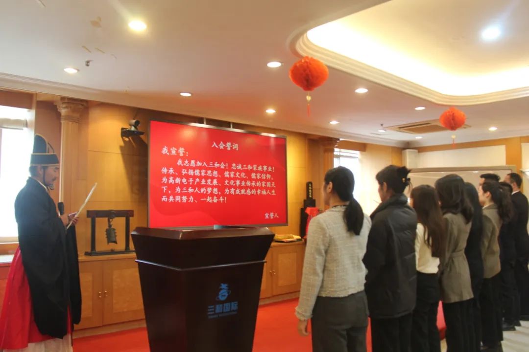 2024年1月27日,三和国际集团2023年度三和家族事业委员会新会员入会仪式在三和国际孔圣堂隆重举行。三和国际集团董事长、三和会会长张华先生,集团行政副总裁、三和会副会长池静芳女士,集团运营副总裁、三和会秘书长岳晓光先生和一众新老会员、准会员及三和家人共同参与见证。