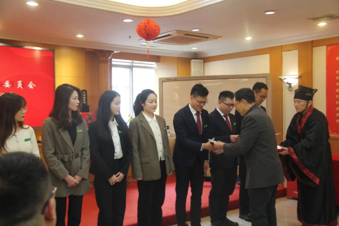 师友分祚以明天德、新会员受祚以体天恩!张华董事长向新会员颁发会员证书、分红分祚,并合影纪念。