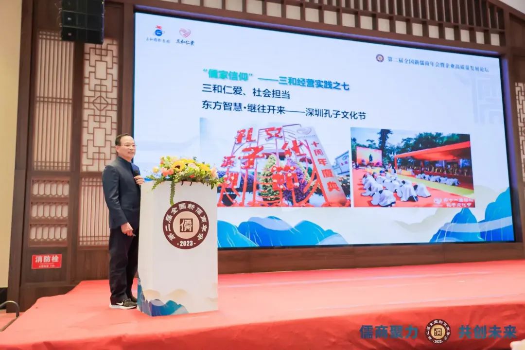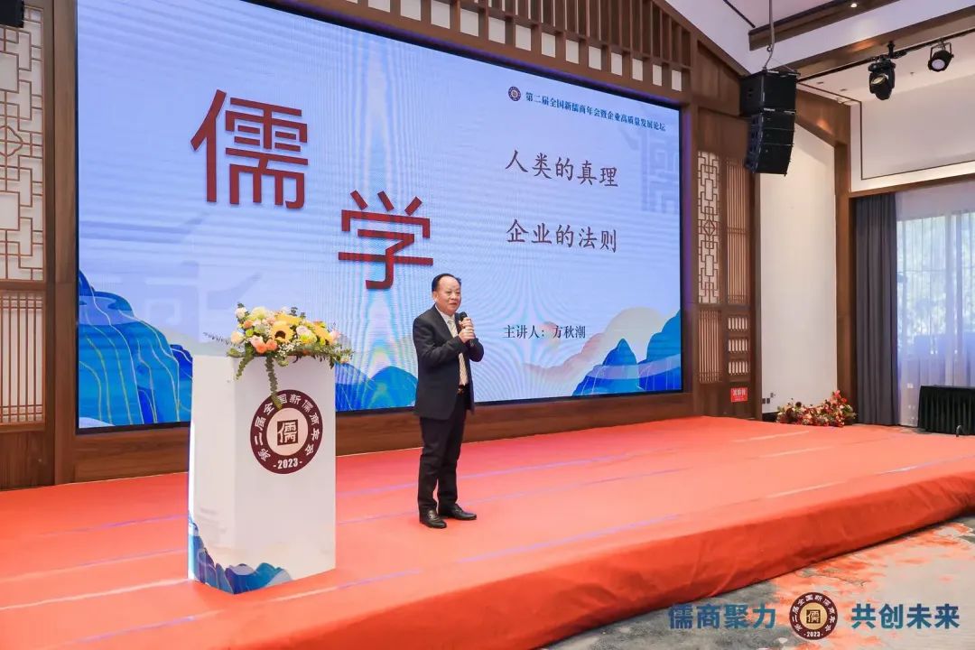 在当天上午举行的大会主题演讲环节,当代新儒商示范企业方太集团董事长兼总裁茅忠群、山西天元集团董事局名誉主席李景春、深圳三和国际集团董事长张华、复旦大学东方管理研究院院长苏勇教授,分别发表了精彩的演讲。