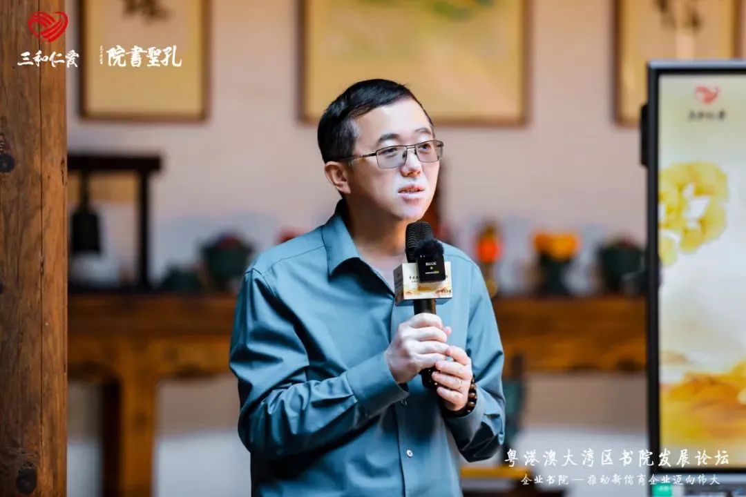 三和国际集团董事长、三和仁爱文化基金会会长、粤港澳大湾区书院发展论坛主席张华以“企业书院与经营智慧”为主题,回顾了发起深圳孔子文化节的初心、成立三和仁爱文化基金会的初衷,并分享了企业书院在推动三和国际新儒商企业发展中所作出的重要作用和积极贡献。