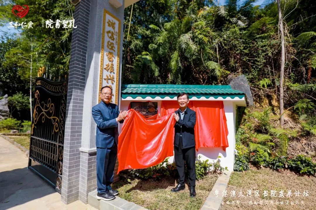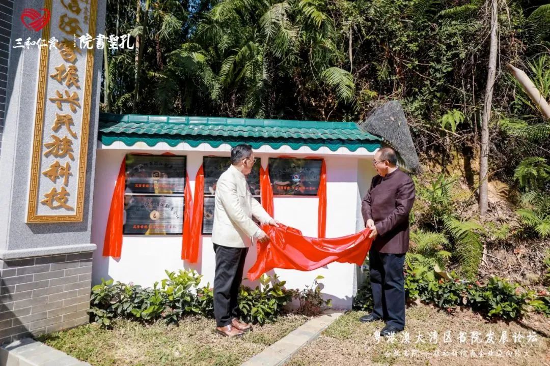 丘树宏主席与邓洪波邓书院,共同为“粤港澳大湾区书院发展论坛企业书院万绿湖培训基地”牌匾揭幕