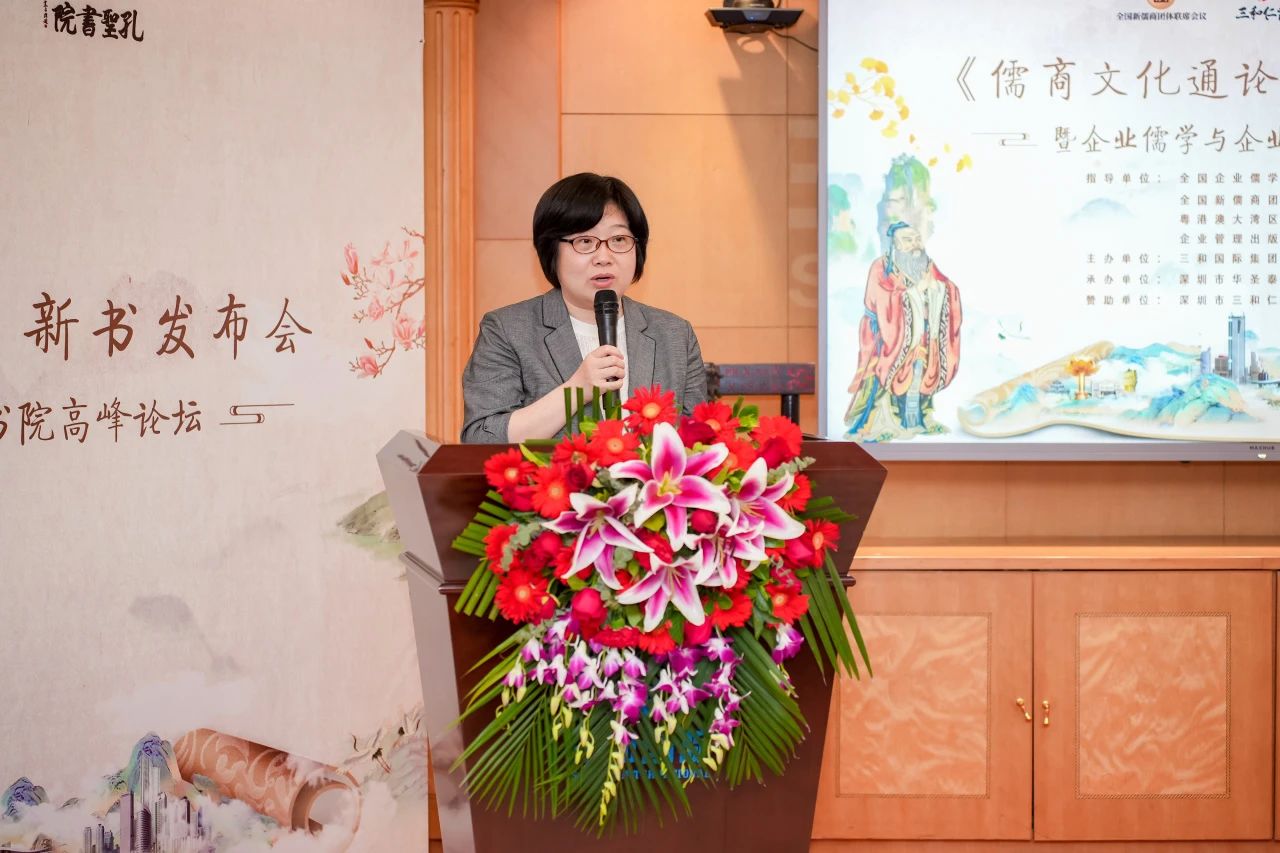 企业管理出版社社长兼总编辑陈静发表致辞,暮春三月,万物竞发,我们相聚在充满创新活力的深圳,共同见证《儒商文化通论》的盛大发布。深圳,这座因改革开放而生、因创新而强的城市,始终站在时代发展的前沿,是儒商精神现代化转化的最佳实践场,在这里举办新书发布会意义非凡。