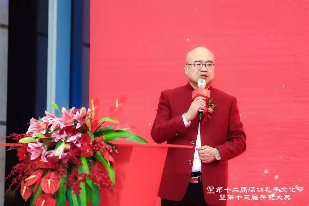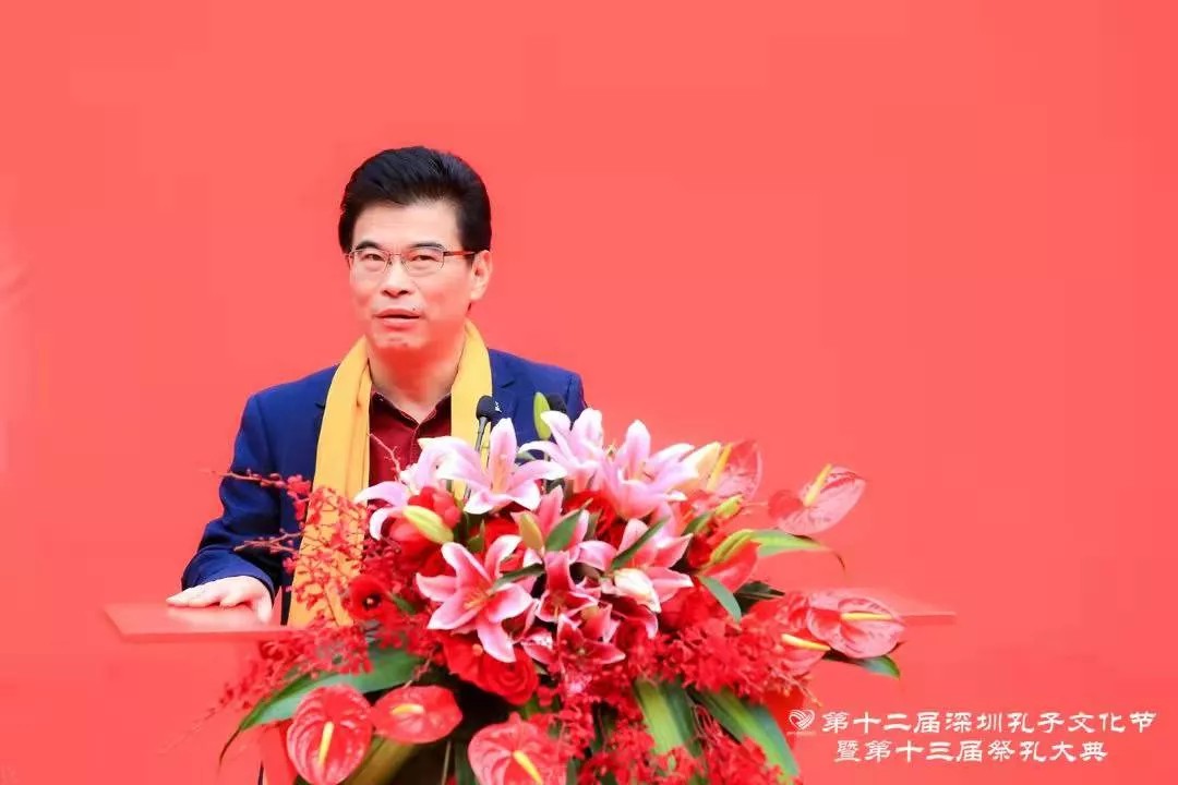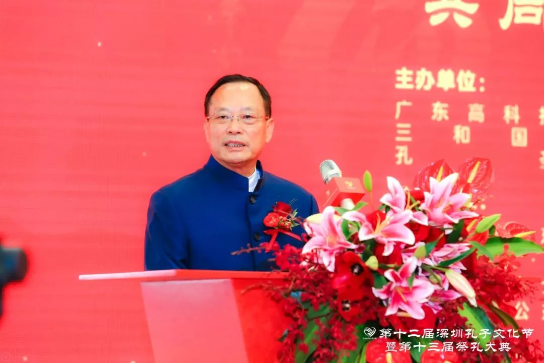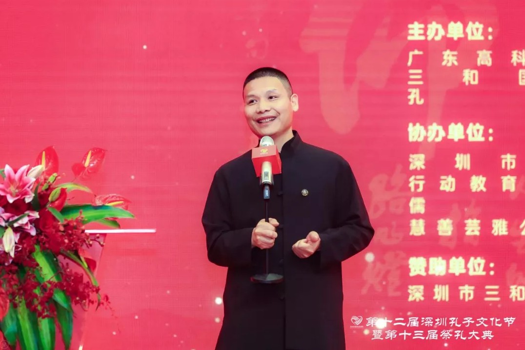 2021年12月19日上午10时,由广东高科技产业商会、三和国际集团、孔圣堂联合主办,深圳市东湖公园、行动教育·深圳校友会、儒士社、慧善芸雅公益慈善基金会协办的第十二届深圳孔子文化节暨第十三届祭孔大典,在东湖公园孔子文化广场隆重举行。深圳市委宣传部二级巡视员、原市委外宣办主任、市政府新闻办主任、著名儒家学者韩望喜,原深圳市委统战部副部长、深圳市侨联主席、侨媛协会会长、孔子后裔孔爱玲,罗湖区委统战部副部长杜阳,当代著名儒学家、新儒商事业创立者、中山大学哲学系原系主任黎红雷,以及主办方代表广东省政协常委、广东高科技产业商会会长、深企联常务会长王理宗,深圳孔子文化节创始人、新儒商事业、家风建设推动者、三和国际集团董事长张华共同出席大典。