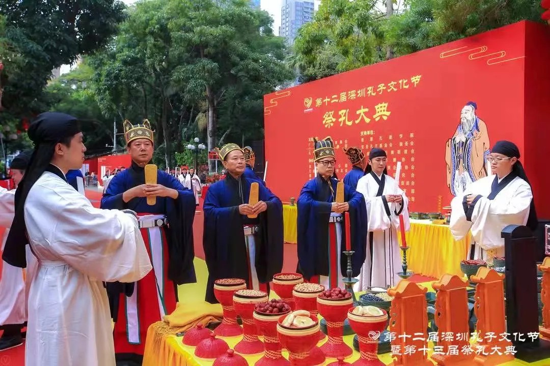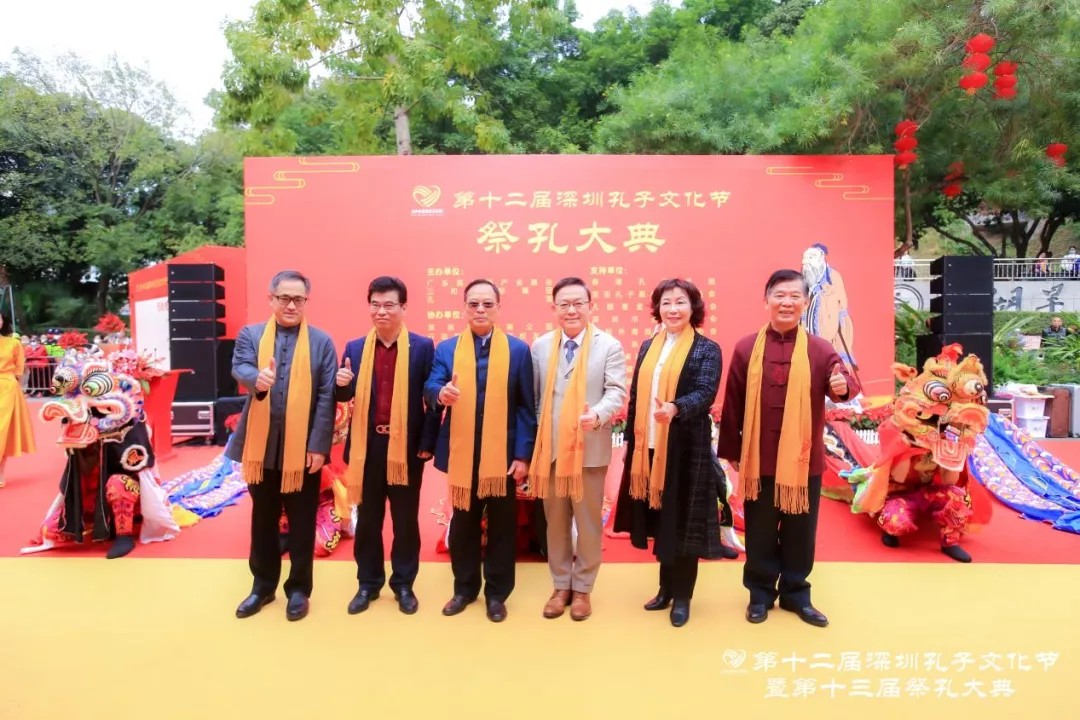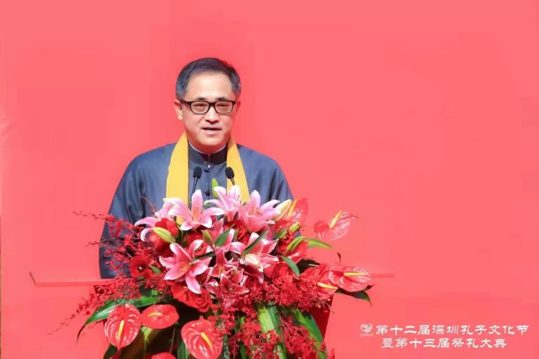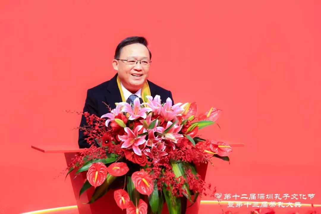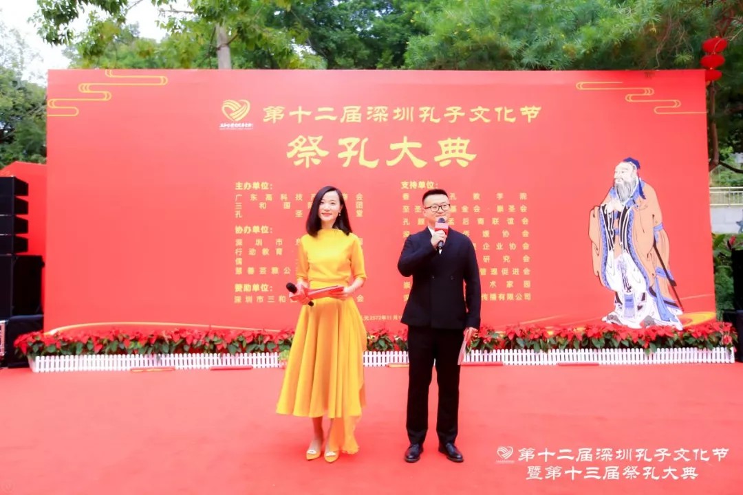 2021年12月19日上午10时,由广东高科技产业商会、三和国际集团、孔圣堂联合主办,深圳市东湖公园、行动教育·深圳校友会、儒士社、慧善芸雅公益慈善基金会协办的第十二届深圳孔子文化节暨第十三届祭孔大典,在东湖公园孔子文化广场隆重举行。深圳市委宣传部二级巡视员、原市委外宣办主任、市政府新闻办主任、著名儒家学者韩望喜,原深圳市委统战部副部长、深圳市侨联主席、侨媛协会会长、孔子后裔孔爱玲,罗湖区委统战部副部长杜阳,当代著名儒学家、新儒商事业创立者、中山大学哲学系原系主任黎红雷,以及主办方代表广东省政协常委、广东高科技产业商会会长、深企联常务会长王理宗,深圳孔子文化节创始人、新儒商事业、家风建设推动者、三和国际集团董事长张华共同出席大典。