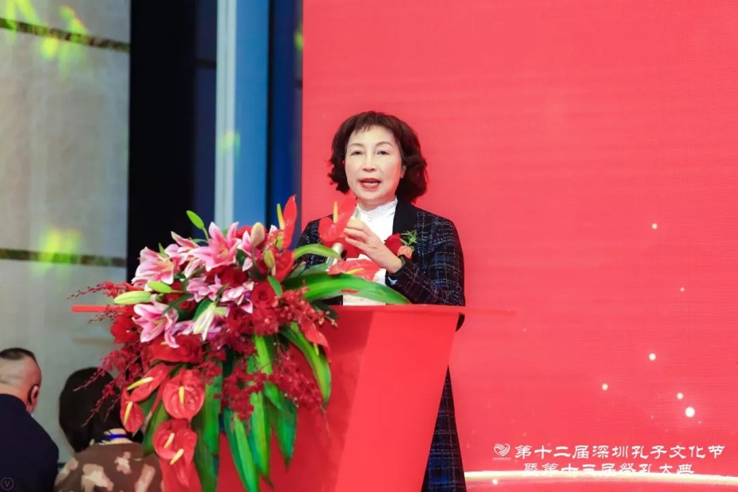 原深圳市委统战部副部长、深圳市侨联主席、市侨媛协会会长、孔子后裔孔爱玲为大成宴致祝酒词