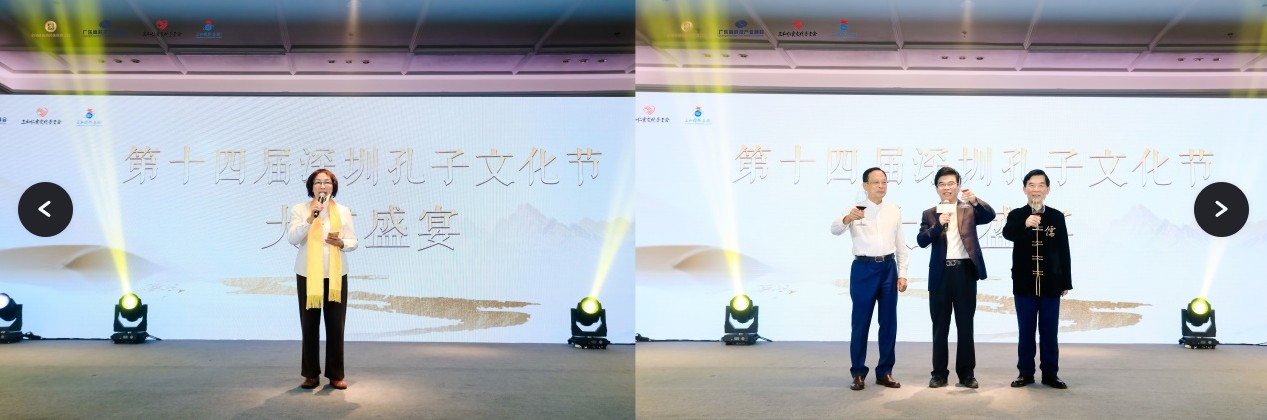 大成盛宴上,深圳市委原统战部副部长、深圳市侨联主席、侨媛会会长、孔子后裔孔爱玲致辞,全国政协委员、广东高科技产业商会王理宗会长,博鳌儒商论坛理事长、全国新儒商团体联席会议秘书长、中山大学教授黎红雷,三和国际集团董事长、三和仁爱文化基金会会长、香港孔教学院副院长张华共同祝酒,现场礼乐典雅,多位书法家现场挥毫题赠墨宝,活动在精彩纷呈的弦歌雅宴中圆满落幕。