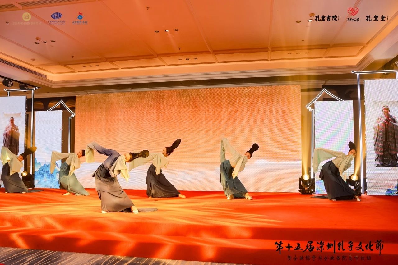 广东省委统战部副部长、一级巡视员李阳春,原深圳市政协副主席、农工党深圳市委主委、深圳大学副校长陈思平,深圳市侨媛协会会长、孔子后裔孔爱玲,福建省南平市人民代表大会常务委员会副主任兰林和,原深圳市委宣传部二级巡视员、外宣办主任、市政府新闻办主任、深圳市儒家文化研究会会长、中国人民大学哲学博士韩望喜,原广东惠州市委宣传部常务副部长、市文化广电新闻出版局局长、惠州学院党委副书记、东江书院高级顾问罗川山,全国新儒商团体联席会议秘书长、全国企业儒学团体联席会议秘书长、中山大学教授黎红雷,国际儒联副会长、国家教育行政学院教授于建福,韩国首尔大学教授、国际儒联副会长郭沂,孔子第78代孙,中国传统文化促进会孔子文化传承委员会主任、中国商业联合会文化发展分会副会长、曲阜孔子书院执行院长、世界孔子联谊总会会长孔众,江西财经大学原副校长、中国企业管理研究会副会长、教授吴照云,上海财经大学国际儒商高等研究院院长、全国经济哲学研究会会长、中宣部五个一工程获得者、享受国务院政府津贴、特殊津贴专家张雄,厦门筼筜书院创院山长、厦门朱子书院创院院长、中国书院学会副会长王维生,新加坡南洋理工大学孔子学院创院院长、相圣学院创院院长许福吉,马来西亚南方大学原校长祝家华,武汉大学中国传统文化研究中心教授胡治洪,香港中文大学教授陈剑锽,华南理工大学教授晁罡,《企业家》杂志主编、中国商业文化研究会、中华优秀传统文化传承发展分会会长孙庆生,全国新儒商示范企业、深圳乐天成集团董事长、鲁商联盟粤港澳大湾区工委主席孙明高,全国新儒商示范企业、山西天元集团总经理、天元书院执行院长毛红亮,全国政协委员、广东高科技产业商会会长王理宗,三和国际集团董事长、三和仁爱文化基金会会长、粤港澳大湾区书院发展论坛主席、香港孔教学院副院长张华莅临出席,来自全国各地的企业家、学者、社会各界人士共同出席参与第十五届孔子文化节暨企业儒学与企业书院高峰论坛。孔子第 77 代后裔孔亚平主持本次论坛。